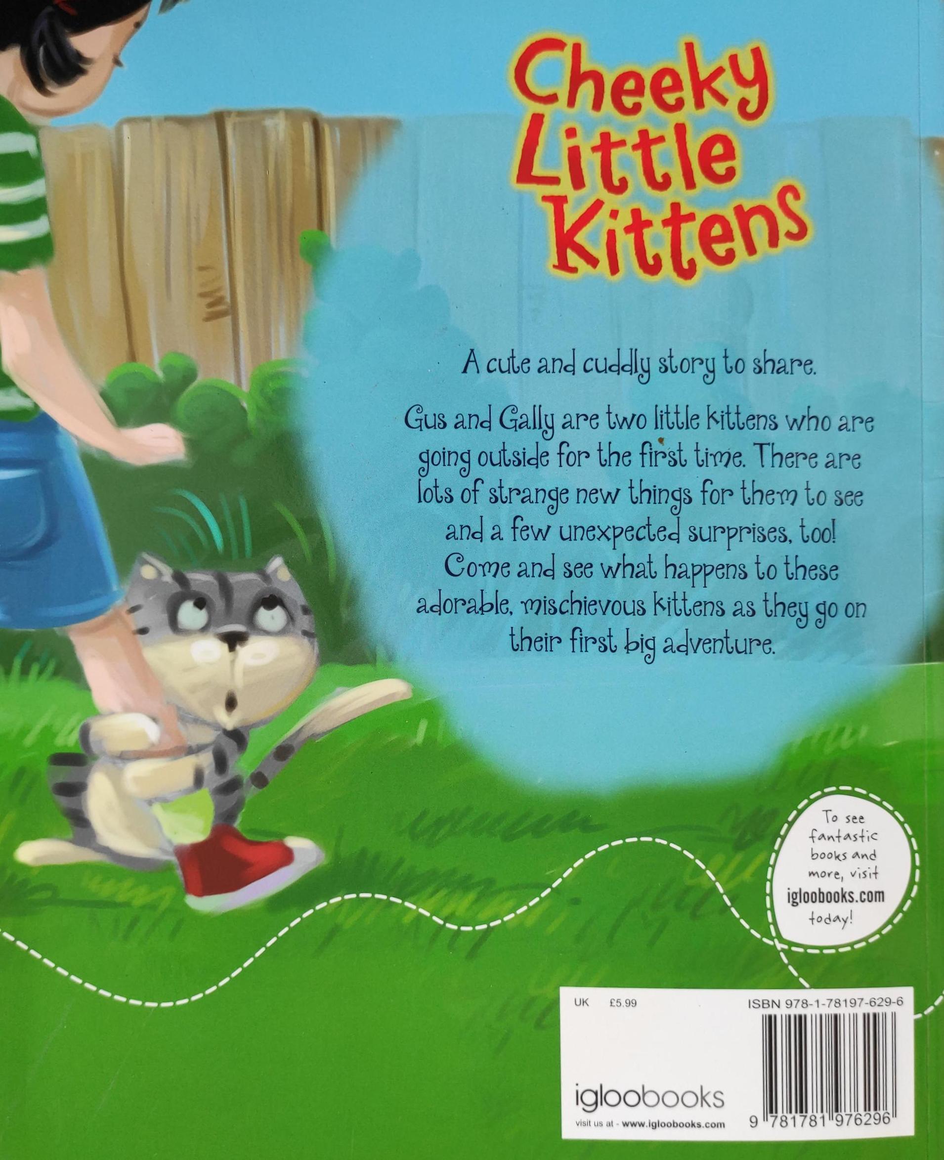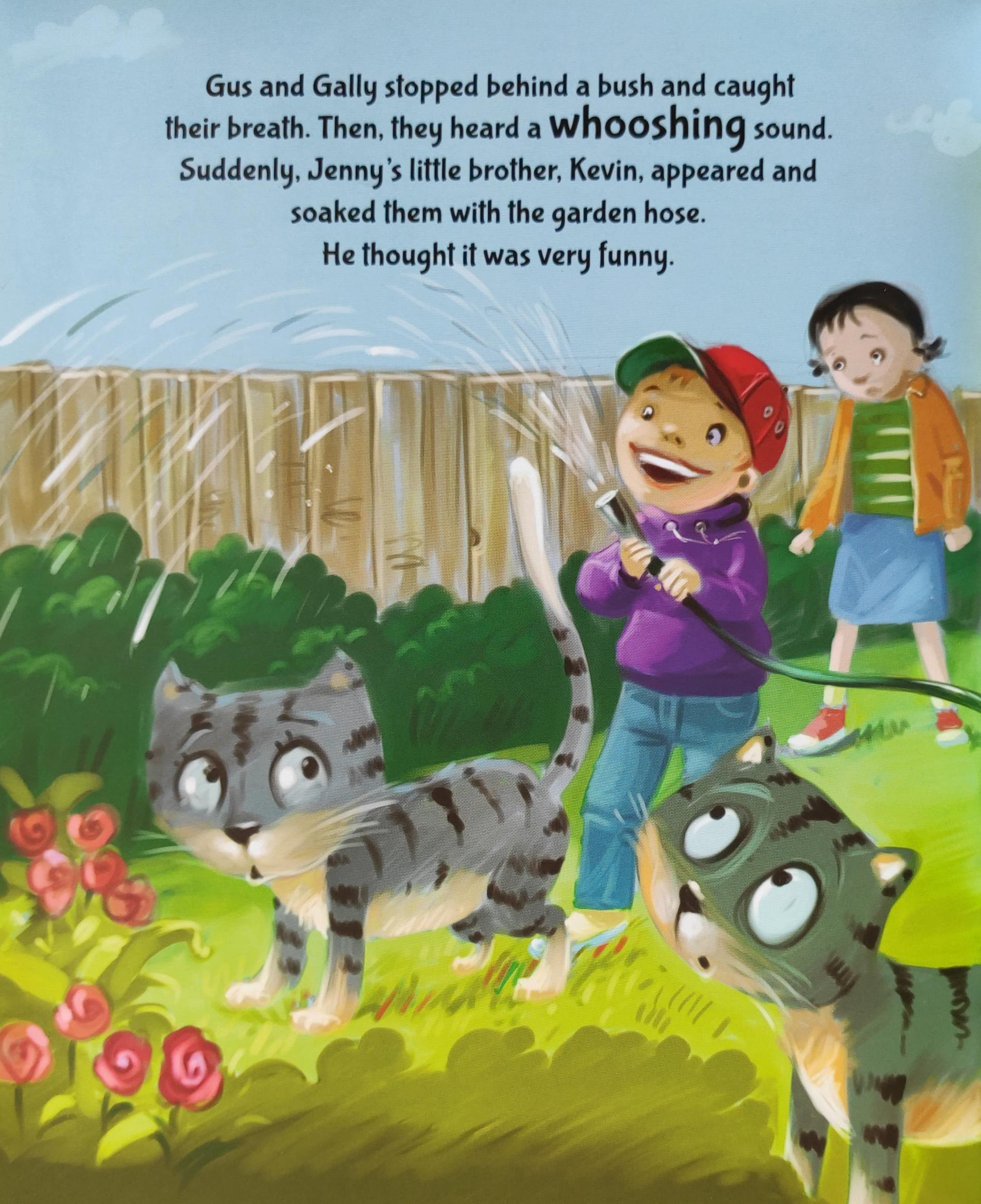 A cute and cuddly story to share. Gus and Gally are two little kittens who are going outside for the first time. There are lots of strange new things for them to see and a few unexpected surprises, too! Come and see what happens to these adorable mischievous kittens as they go on their first big adventure.
