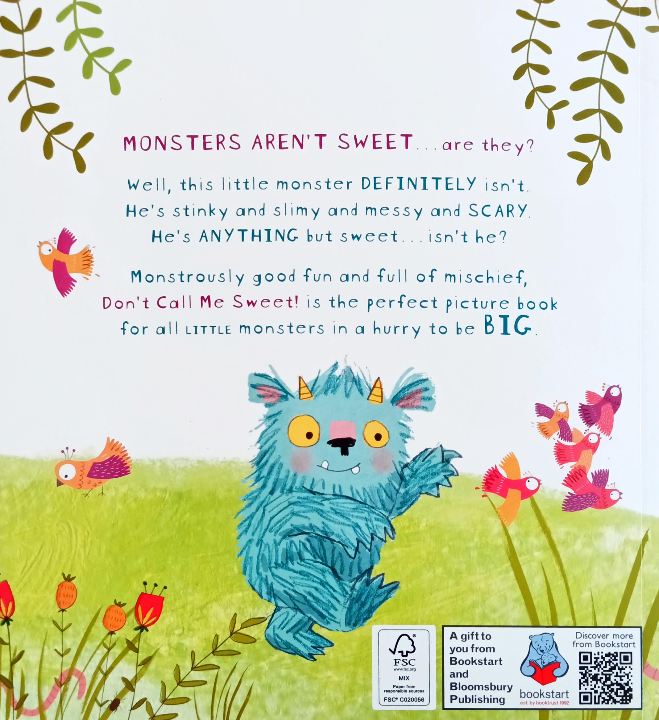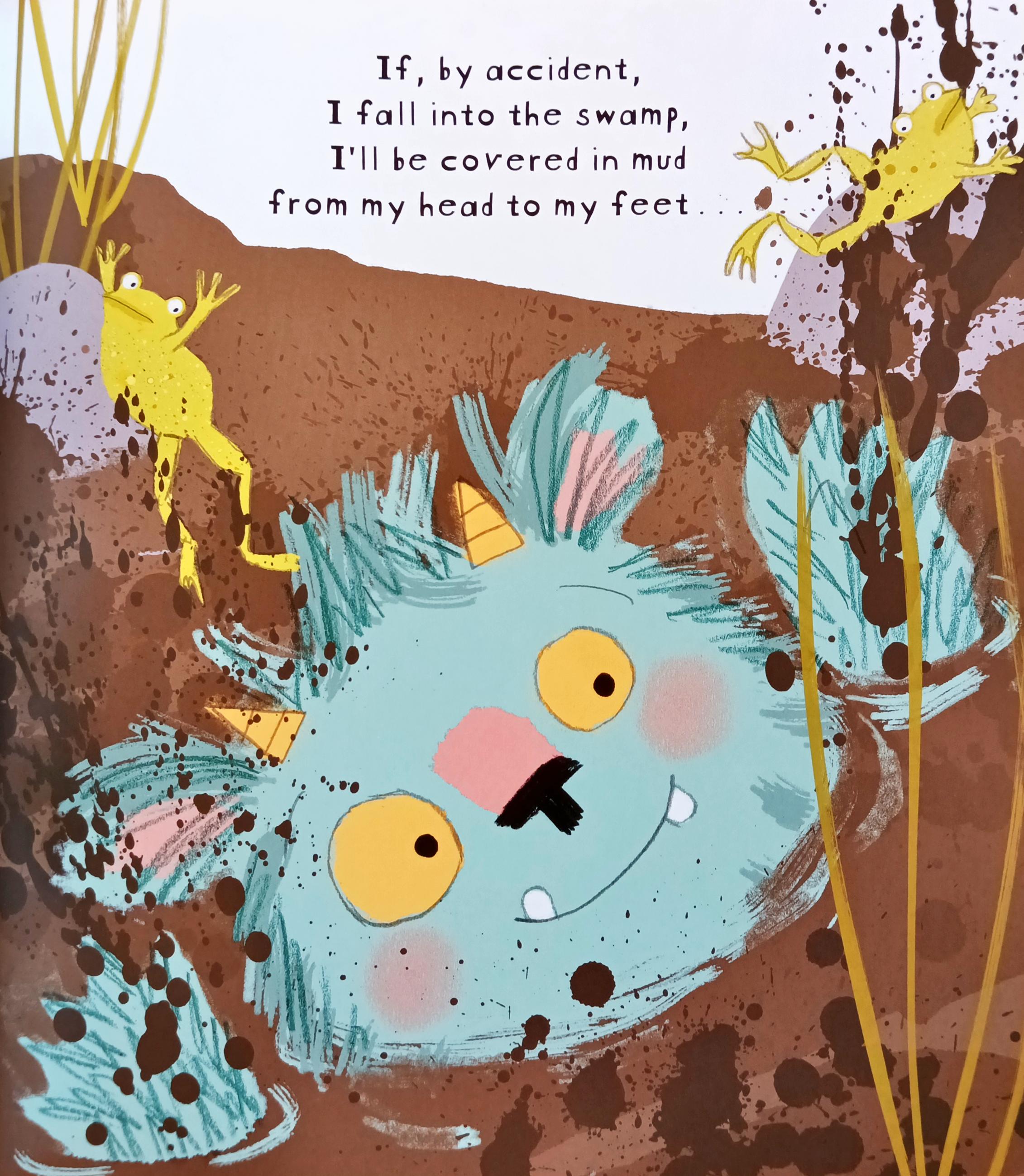 Everyone thinks that little monsters are cute and cuddly, but this monster's grumpy and grouchy. Honest! He does REAL monster stuff, like stomping around and eating squishy, squelchy food like bug eye stew. He's brave, too - he's not scared of anything. Not even big, hairy ogres. Wait, is that a big, hairy ogre? Help!