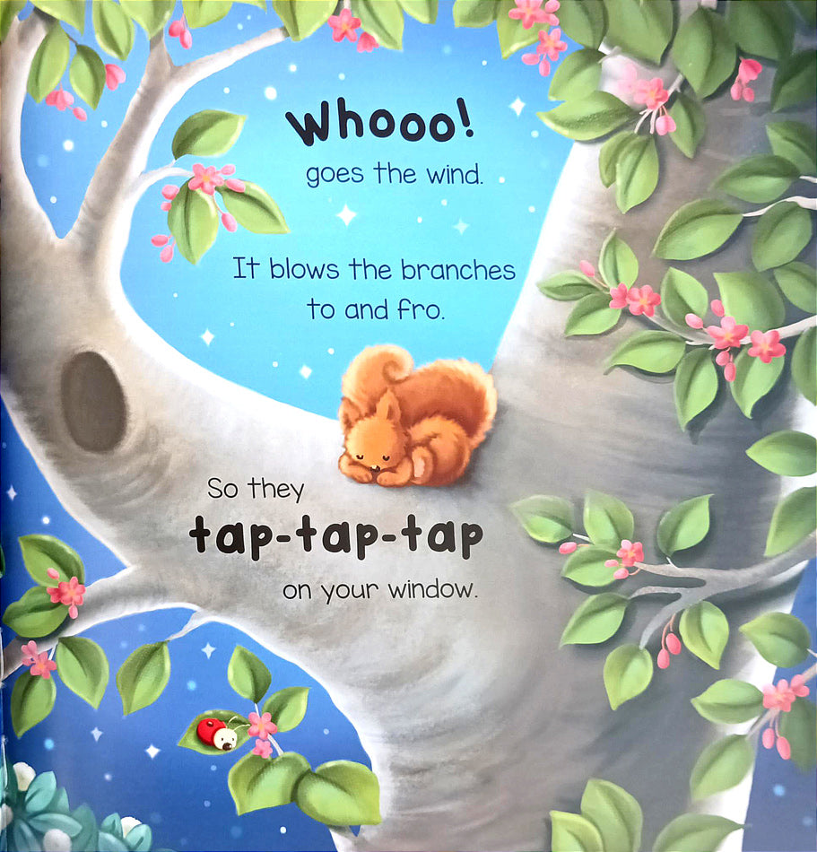 It's time for bed! Wearing his rocket pajamas and tucked in tight, Little Panda is ready to sleep for the night. Until...Whooo! Tap-tap! What's that noise?